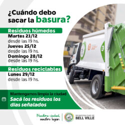 El feriado navideño personal municipal levantará los residuos húmedos con normalidad. En cuando al área de salud, habrá guardia de enfermería en la Asistencia Pública el 24, de 9 a 12 y de 15 a 19 horas, y el 25, de 9 a 12 y de 16 a 20 horas. En cuanto a los demás Leer másLa recolección de residuos será normal el 25 y habrá guardias en salud[…]